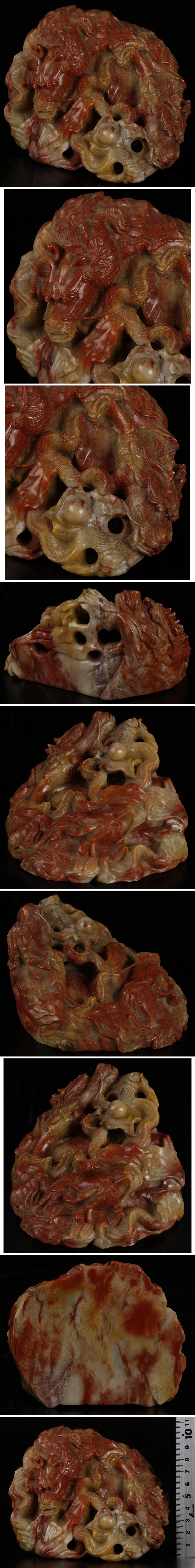 ■中国美術 寿山石 雲竜彫 置物 重さ約884g■